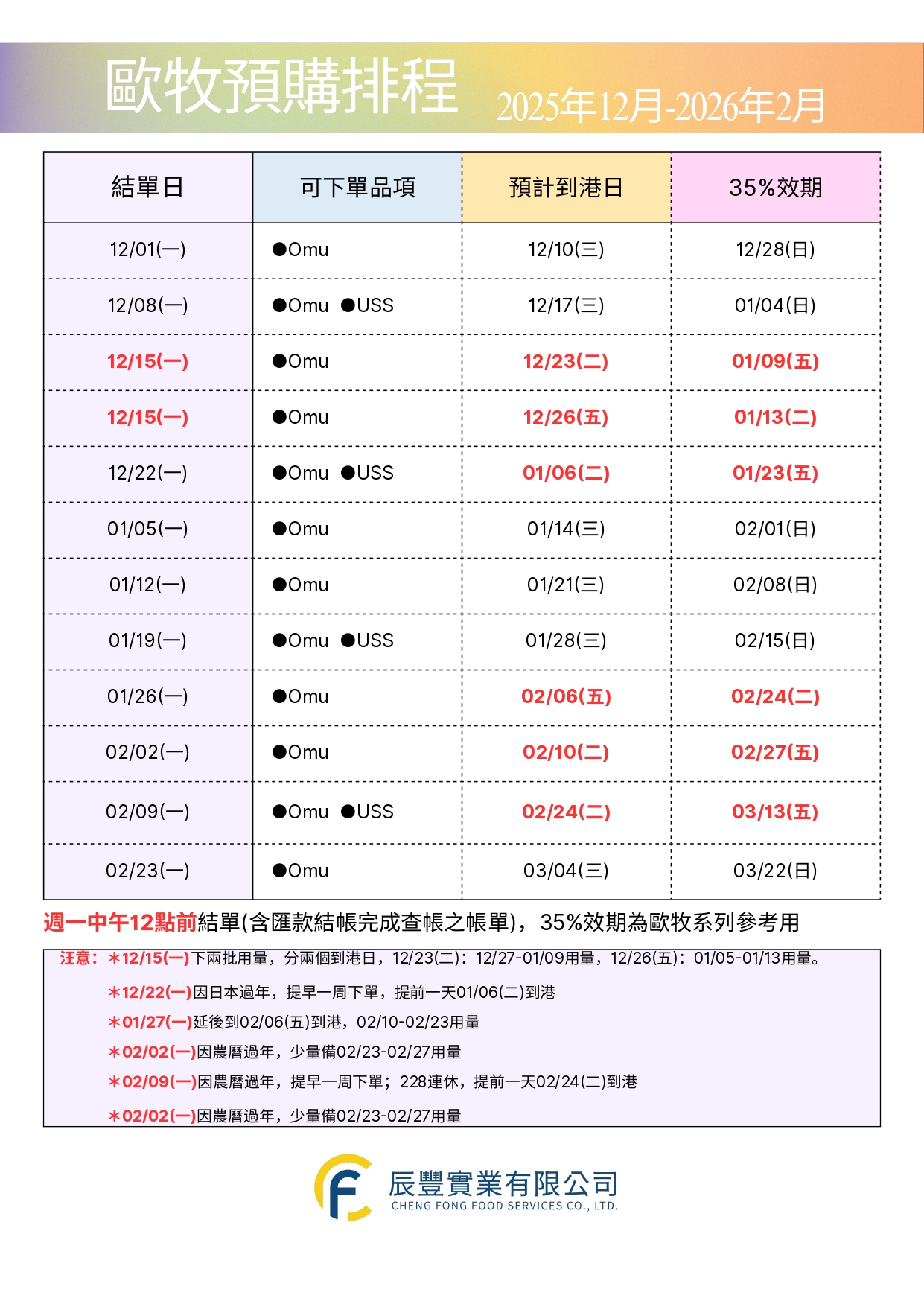 歐牧乳業‧不二製油【2025.12-2026.02】