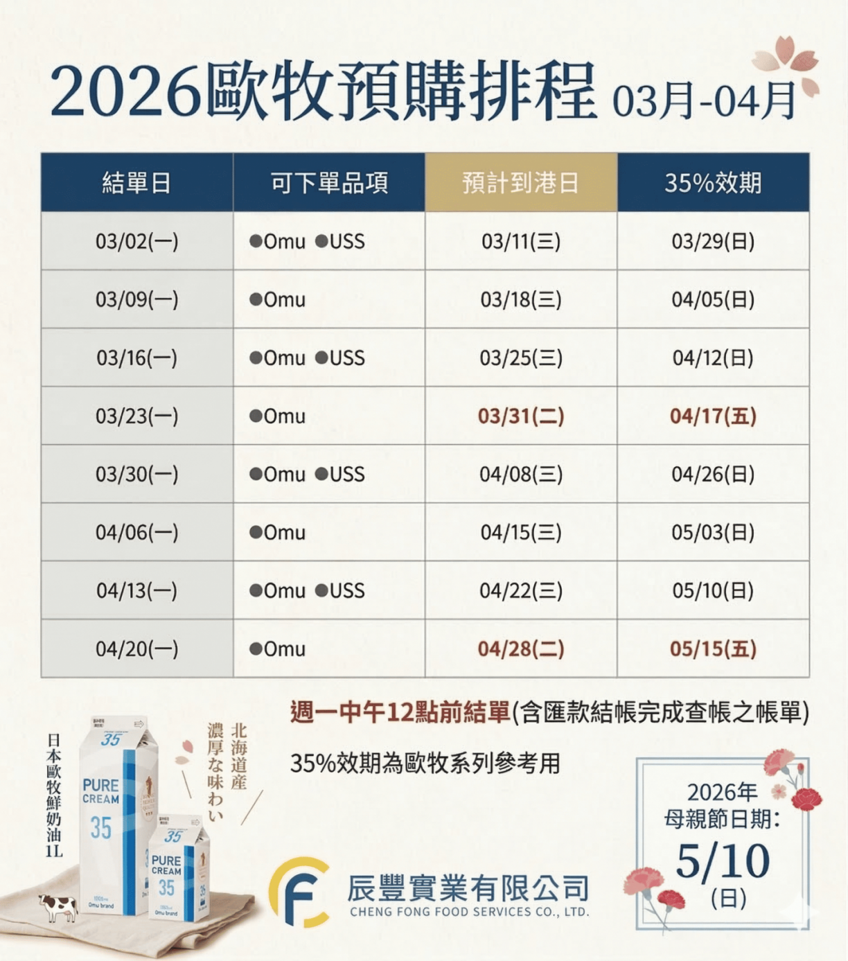 歐牧乳業‧不二製油【2026.03-2026.04】