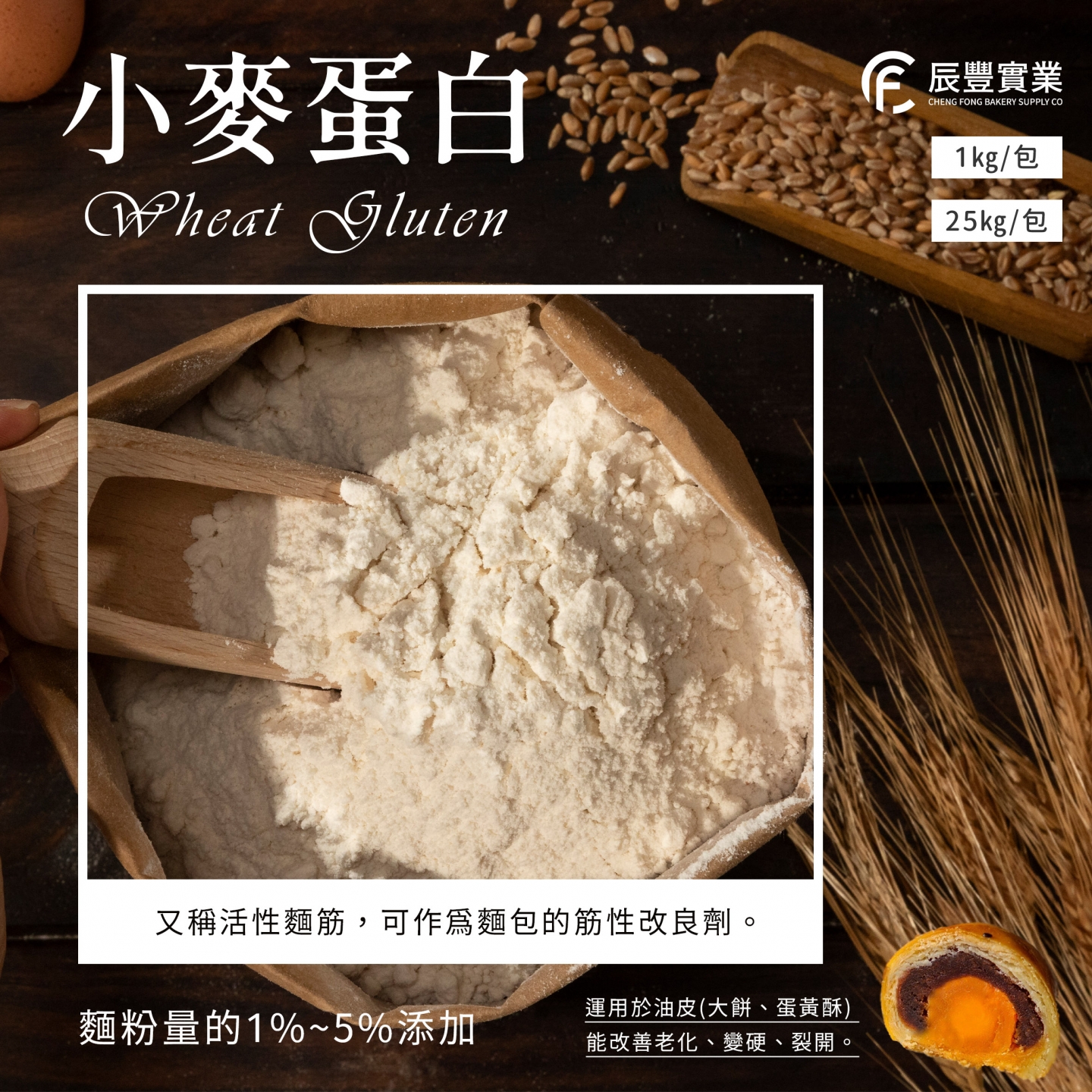 又稱「活性麵筋」可作為麵包的「筋性改良劑」,添加在麵粉增加蛋白質含量以提高麵粉筋性,鎖住水份,防止麵包老化,增進麵糰黏彈性與Q性、延展性,增大麵包體積。