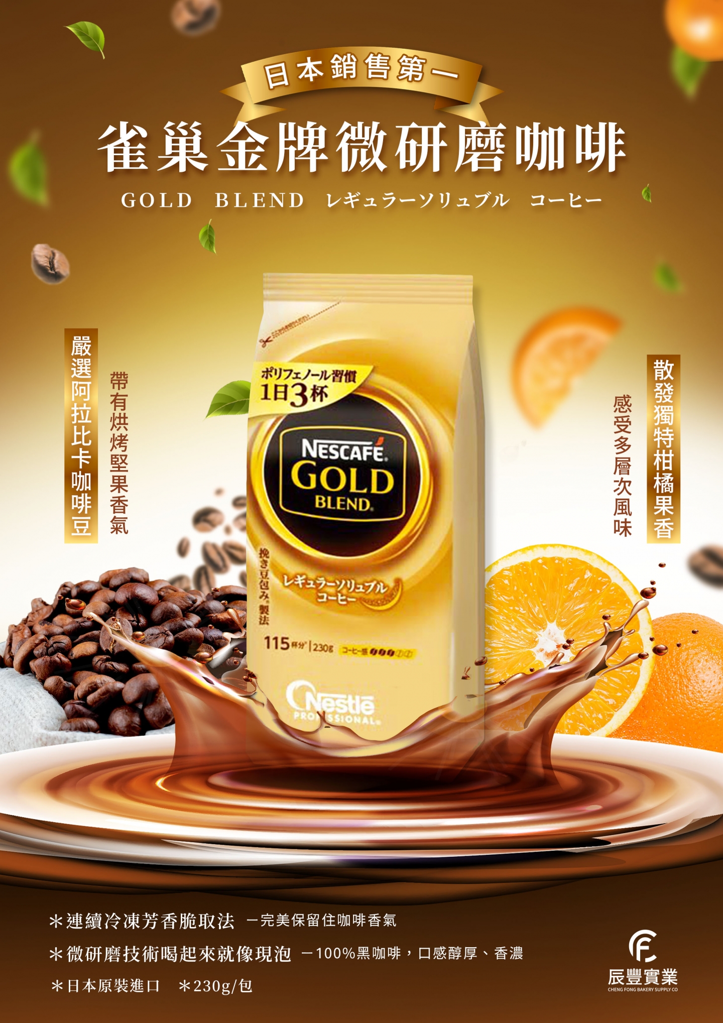 雀巢金牌使用冷凍乾燥技術,讓即溶咖啡也能散發研磨咖啡一般的香氣及濃醇口感,入口厚實回甘、香氣濃郁。Nescafe Gold 雀巢金牌隨身包方便攜帶沖泡,咖啡因減量版提供客戶多樣化的選擇。