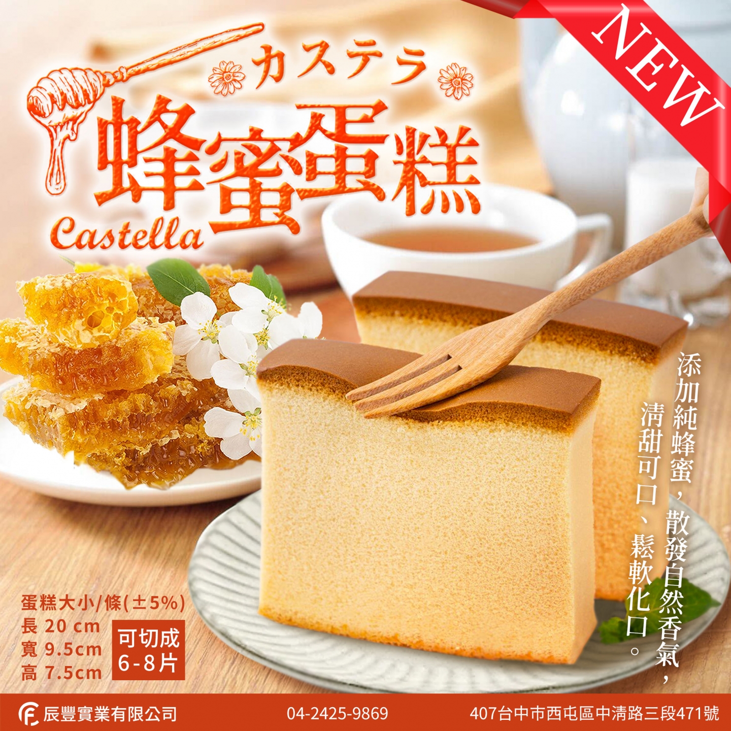 商品資訊品 名:蜂蜜風味蛋糕(冷凍成品)