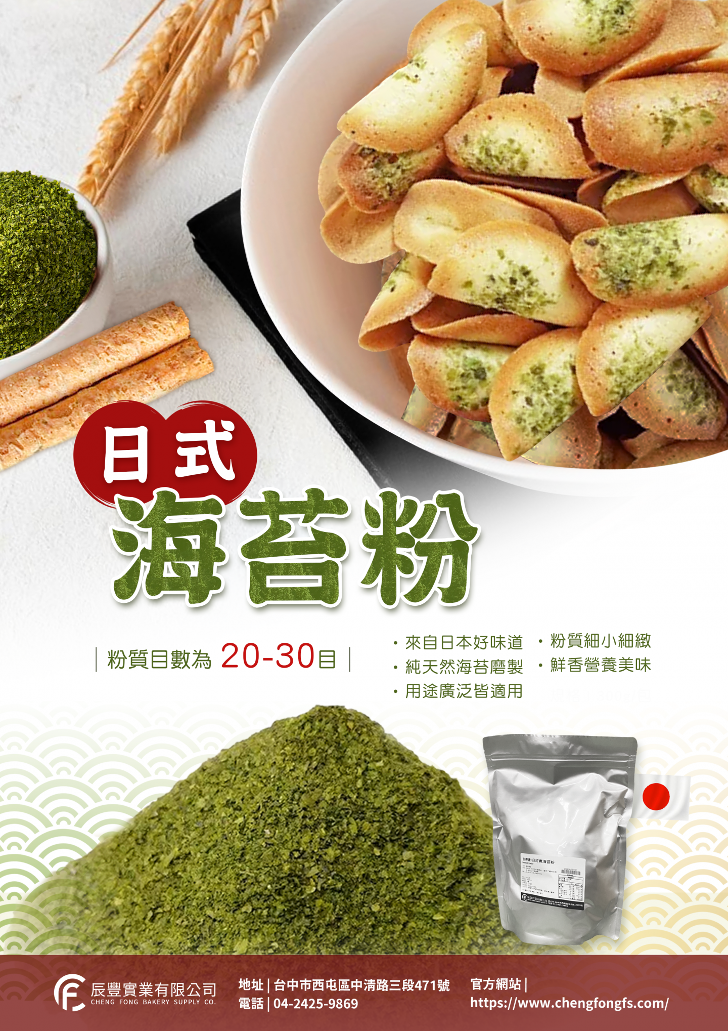 適用於飯糰、章魚燒、煎餅燒、日式料理、麵包、蛋糕等,增添自然海風味。