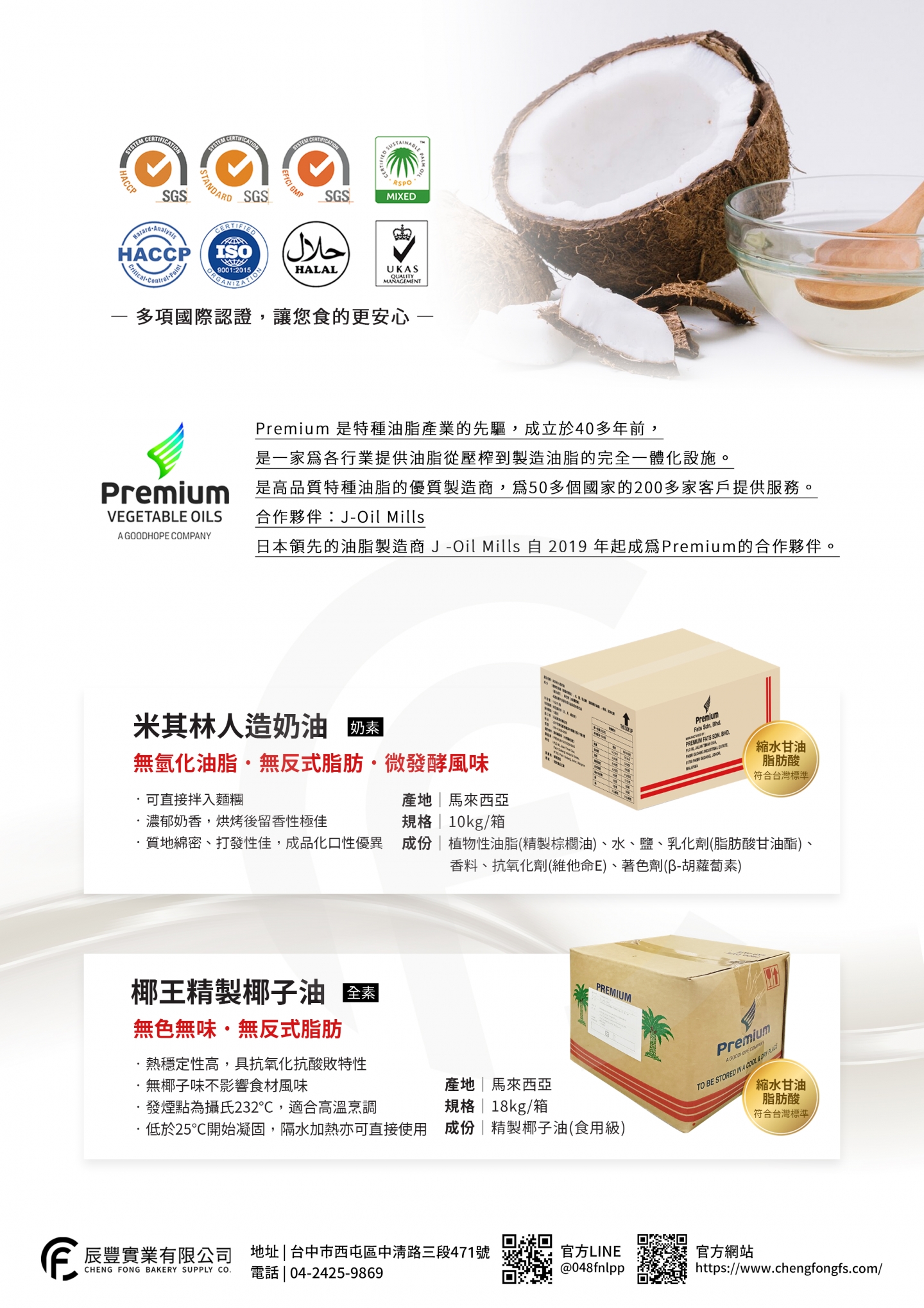 無氫化油脂、無防腐劑、零反式脂肪,濃郁奶香,烘烤後留香性極佳,可直接與麵糰攪拌,無需事先融化,使用在餅乾及酥皮口感更為酥脆。