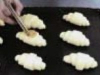 3.如欲增加成品酥脆度,完成發酵之麵糰烤焙前無須刷蛋水,進爐後初期噴蒸氣10~15秒,可使成品維持3~4小時酥脆感。 -