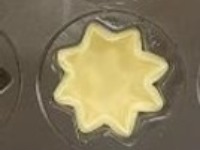 2.星型模噴油,麵糰放入模中,用手輕壓麵糰貼合模具, 倒入 55~60g塔液。